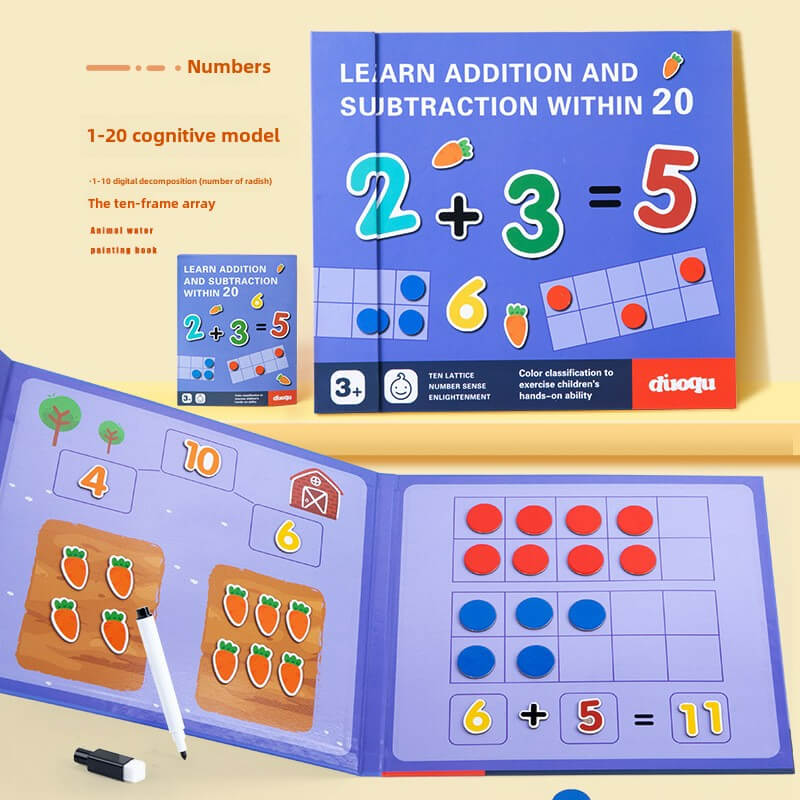 • 👉🏼Complete accessories: Equipped with tools such as whiteboard pens, which is convenient for children to write and practice at any time, making learning more convenient and efficient and providing children with a one-stop mathematical enlightenment experience.